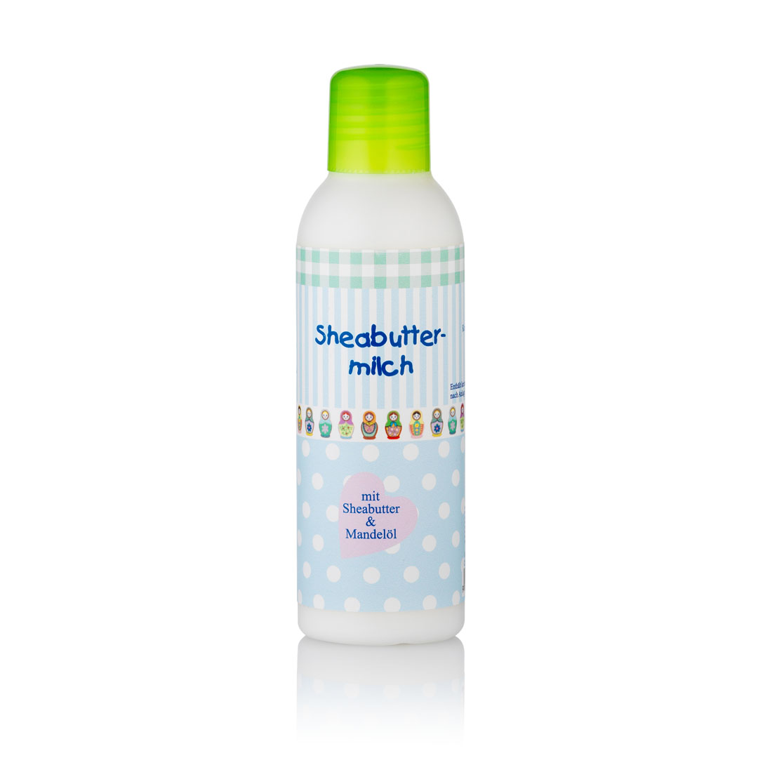 Hochwertige Pflegemilch mit Sheabutter und Mandelöl.